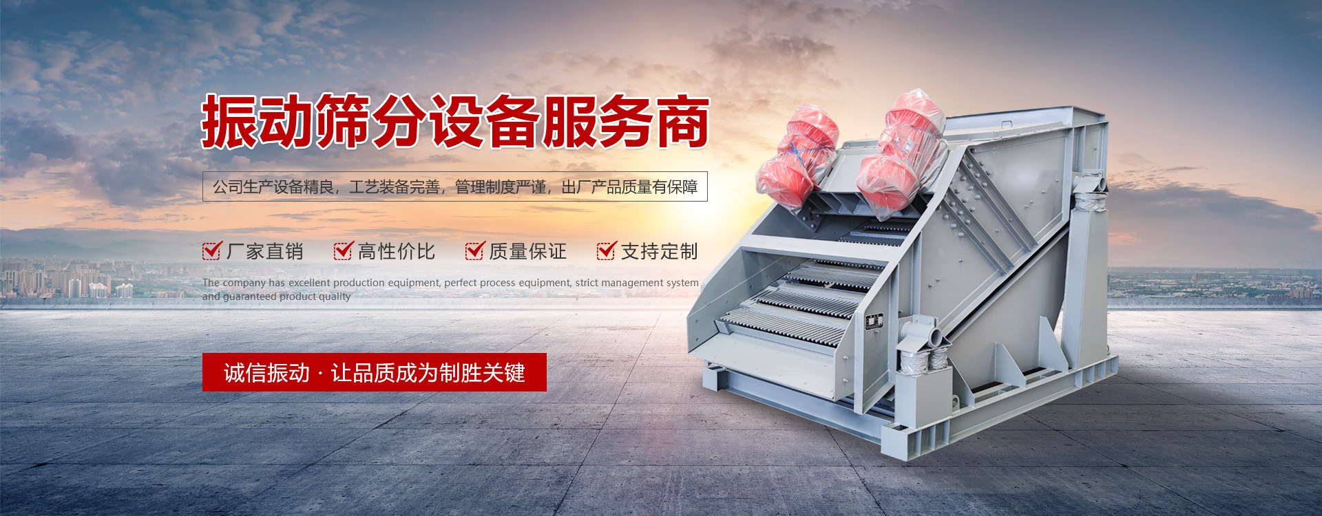 新鄉(xiāng)市誠信振動設(shè)備有限公司是國內(nèi)生產(chǎn)振動設(shè)備及礦山機(jī)械設(shè)備的生產(chǎn)廠家,公司集研發(fā)、 設(shè)計、生產(chǎn)、 銷售為一體化,注冊資金5800萬元,職工500余人,技術(shù)人員80余人。公司位于河南省新鄉(xiāng)市小冀經(jīng)濟(jì)開發(fā)區(qū),占地8萬平方米,建筑面積6.8萬平方米。并通過了ISO質(zhì)量體系認(rèn)證,歐盟使用產(chǎn)品強(qiáng)制性的CE認(rèn)證。公司的主要產(chǎn)品有系列振動電機(jī)、振動篩、多元環(huán)保篩、彈性環(huán)保篩、振動給料機(jī)、振動輸送機(jī)、破碎機(jī)、皮帶機(jī)、斗式提升機(jī)、鏈斗輸送機(jī)等多種產(chǎn)品及其配件,共計20多個系列,400多種規(guī)格。產(chǎn)品廣泛用于冶金、礦山、煤炭、化工、建材、電力、路橋工程等行業(yè)。 [了解詳情]